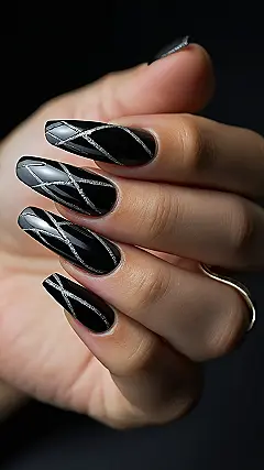 This nail art is giving total boss vibes. Picture this: you’re walking into a room, everyone’s looking at you, and then BAM! They see your killer nails and are instantly intimidated…in a good way! It’s like saying, “I’m here, I’m fierce, and I have the coolest nail art you’ve ever seen!” So, if you’re looking to upgrade your style game, these black magic nails might just be the perfect weapon.