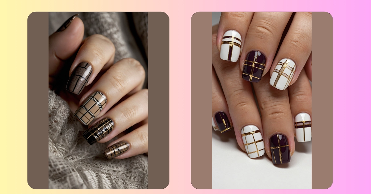 Forget just wearing plaid on your shirts; now your fingertips can get in on the action too! These plaid nails designs are a total glow-up from your average manicure. The way those golden grids perfectly overlap makes them look super intricate, almost like a tiny artist meticulously measured every single line. If your hands could talk, they’d probably be bragging about how they’re not just plain anymore, but fashion-forward and ready to take on the world, one perfectly patterned nail at a time!