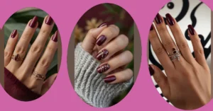 Peep these nails, rocking a deep, glossy maroon that looks ready for anything from a fancy school dance to just chilling out. But let’s be real, the real showstopper is that one finger flexing a super cool silver design! It’s not your grandma’s cozy tartan, but with its awesome textured, almost basket-weave pattern, it proves that nails don’t need stripes and checks to make a big statement. It’s all about mixing sleek colors with a surprising pop of pattern.