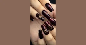 Prepare to totally dazzle everyone this holiday season with nails that are basically Christmas party-ready! Forget leaving out milk and cookies for Santa; with a manicure this sparkling, he might just leave you extra gifts under the tree. Your fingers are practically tiny works of art, rocking that deep glittery red like Rudolph’s fanciest outfit, while the elegant nude nails with delicate gold branches scream ‘winter wonderland glam.’ You’ll be ready for all the holiday selfies and elegantly holding your hot cocoa.