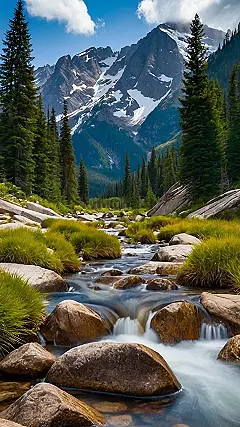 Imagine a place so pretty, it’s like Bob Ross painted it while listening to chill music. This isn’t just a picture; it’s a full-blown nature escape. You’ve got towering mountains looking like they’re having a staring contest with the sky, a sneaky stream begging you to splash around, and enough green to make Kermit the Frog jealous. Someone needs to put this on their bucket list, ASAP!