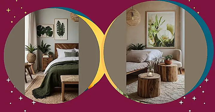 Imagine walking into your bedroom and feeling like you’ve accidentally stumbled into the chillest greenhouse ever! This room is basically giving a big hug to nature, with all the plants and earthy tones. It’s like the designer went to the forest and said, “I’ll take one of everything, please!”