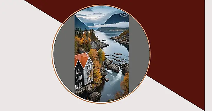 And then there are those two houses, looking all cozy with their bright orange roofs, practically living on the edge next to a waterfall that’s doing its best impression of a speedy river. You’ve got to wonder what it’s like to wake up there, maybe try to catch a fish from your living room window! The trees are just showing off their autumn wardrobes, bursting with yellows and oranges, making everything even more vibrant. This truly screams ‘Norway landscape photography goals’ – imagine trying to mow the lawn on that rocky terrain though! Definitely a unique spot, blending nature’s drama with a touch of charming, cliffside living.