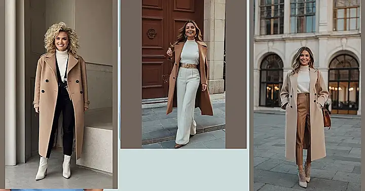 **Paragraph 1:** Hey there, fashion friends! Forget frumpy November sweaters ‚Äì check out this awesome outfit! It’s all about effortless style, perfect for those chilly days when you want to look put-together but still feel comfy. Imagine: you’re strolling through town, maybe grabbing a latte (pumpkin spice, of course!), and suddenly everyone’s admiring your killer camel coat and those seriously chic white pants. It’s the kind of outfit that says “I woke up like this (but secretly spent five minutes choosing the perfect belt).”