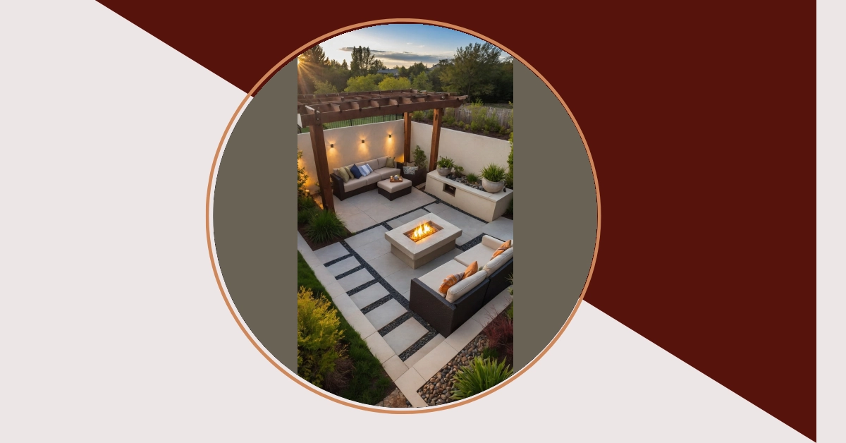 Forget crowded cafes or boring movie nights! This backyard patio design basically screams, “Come on over, let’s roast some marshmallows until we’re all sticky and happy!” With that epic fire pit as the main attraction and those super cozy curved benches piled with pillows, you’ll be the undisputed champion of hangouts. Just try not to set your hair on fire while attempting the perfect golden-brown s’more – we’ve all been there, right? This spot looks like it’s ready for endless stories, laughter, and maybe even a few ghost tales, all thanks to some seriously clever backyard patio designs.