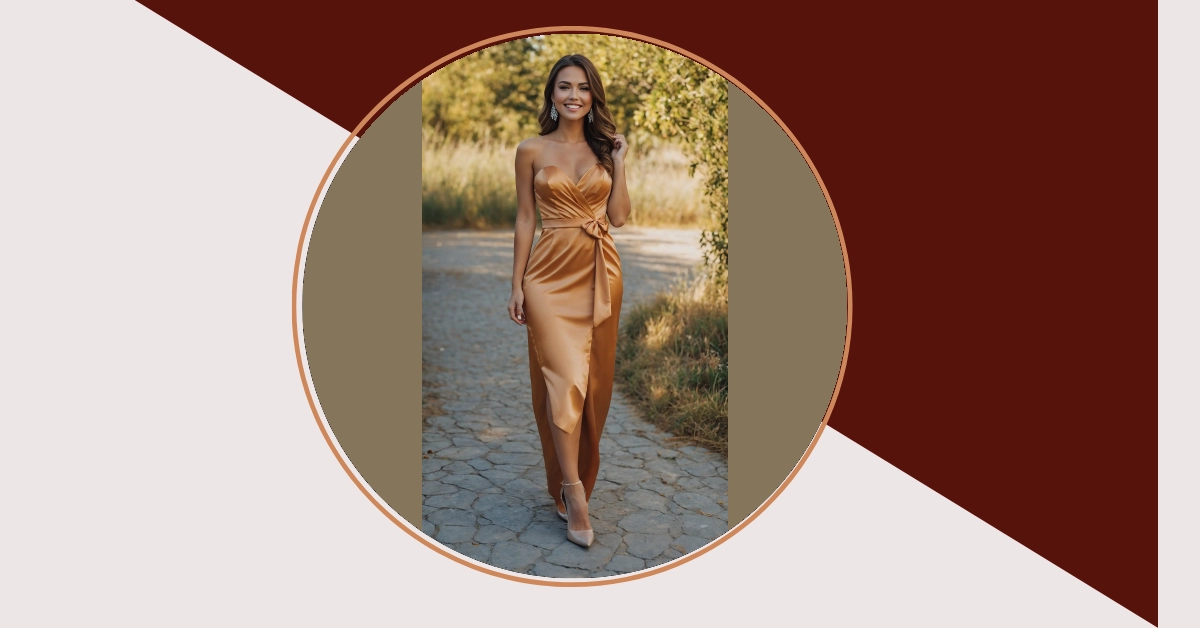 We all know the mission: finding that perfect wedding guest outfit that says “I came to celebrate, not to upstage the bride (much!).” Well, check out this golden goddess look! This stunning satin-wrap dress is basically a cheat code for looking effortlessly chic and totally on-trend. Its strapless design and sassy bow belt mean you’ll be twirling on the dance floor feeling like a million bucks, without actually spending it. Plus, that hint of leg showing through the wrap? Chef’s kiss! It’s definitely one of the latest wedding guest outfits that will get everyone talking (in a good way, of course!).