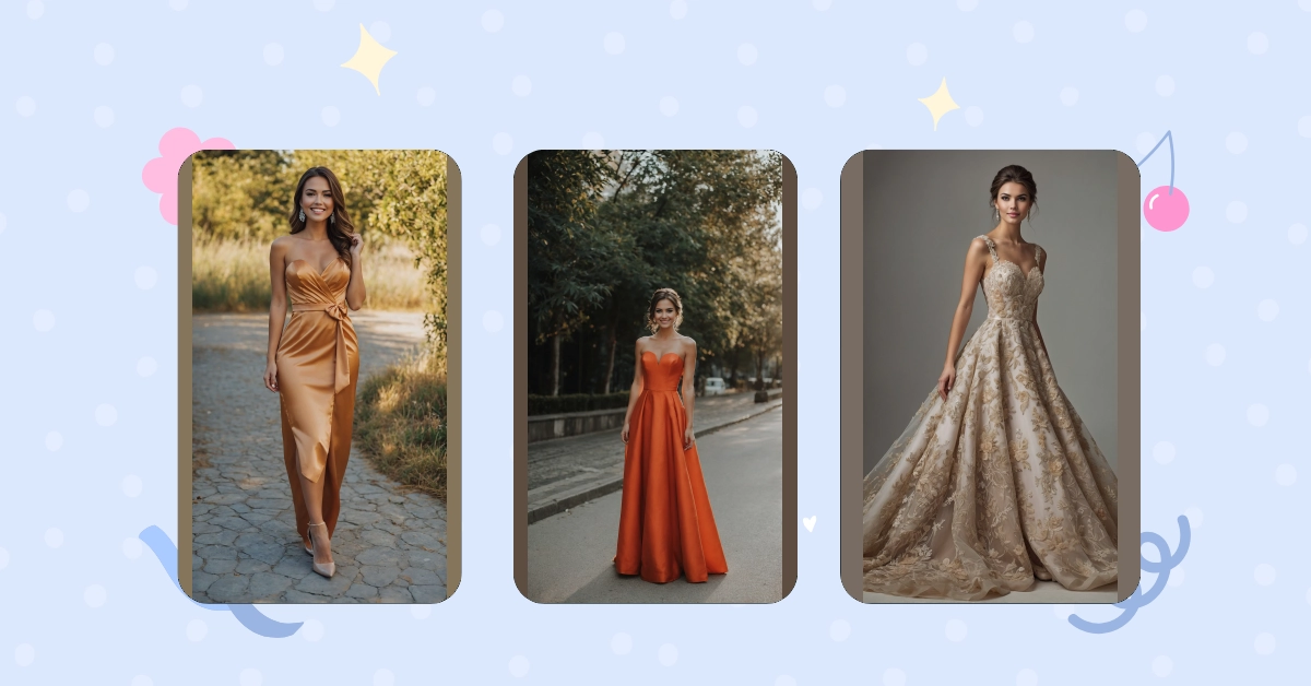 Talk about a showstopper! This latest wedding guest outfit is practically begging for a grand entrance. With its gorgeous champagne color and dazzling gold lace that looks like it’s been painted on, you’ll be the definition of elegant, whether you’re catching the bouquet or just catching a breath after a fierce dance-off. It’s got that fancy vibe that says, “Yes, I dressed up, and yes, I’m absolutely ready for the open bar… of sparkling cider, of course!” Just try not to accidentally get mistaken for a princess who’s wandered off her own royal duties.