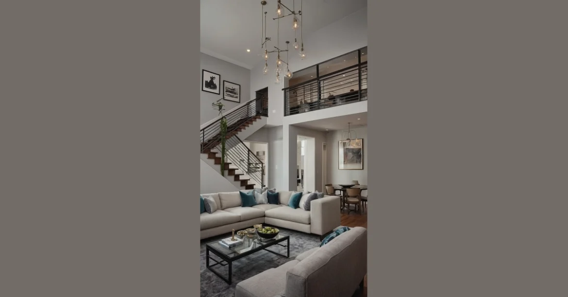 Imagine yourself surrounded by sophisticated yet inviting decor elements – a mix of Scandinavian-inspired accents and industrial chic touches that create a space that is both trendy and inviting. Cozy up on a stylish sectional sofa, adorned with a mix of throw pillows in rich textures and bold patterns that add personality to the room. Soft ambient lighting from modern floor lamps and pendant fixtures casts a warm glow, enhancing the welcoming atmosphere. This cosmopolitan oasis is not just a room but a sanctuary where you can unwind and entertain in style, making every moment spent there a delight for the senses.