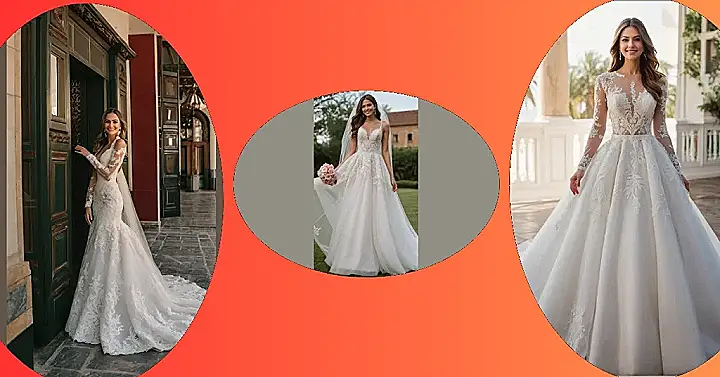 Thinking about dress shopping? This long dress has got you covered, literally! With all that gorgeous lace and the train that goes on forever, you’ll be turning heads and maybe even tripping a few unsuspecting guests (oops!). But hey, if you’re gonna make an entrance, make it a grand one, right? Plus, it’s got sleeves, which means you can skip the arm day at the gym before the big day. Win-win!