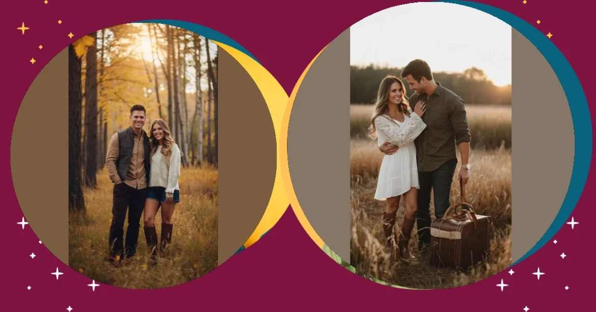 This photo is giving major “fall family picture” vibes, and it’s so cute! The couple is totally rocking their outfits, especially the girl’s white dress and brown boots. It’s like they’re ready for a road trip, which is super fitting for fall! They look so happy and relaxed, just enjoying the beautiful fall weather. I bet their family pictures are going to be amazing!