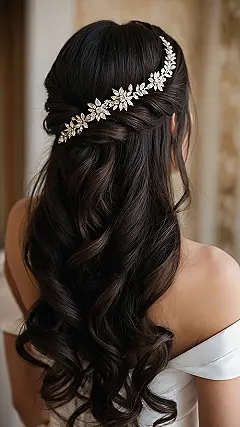 Getting engaged is a HUGE deal, and trust us, you want your hair to be ready for its spotlight moment! Nobody wants to look back at their engagement photos and think, “What was my hair even doing?” This gorgeous half-up, half-down look, complete with those perfect waves and a sparkly hair clip like the one shown, is basically saying, “Yes, I’m getting married, and yes, my hair is fabulous!” It’s like your hair got an exclusive invitation to the party and decided to show up looking like a celebrity, making sure every single angle is picture-perfect. Say goodbye to bad hair days when there’s a sparkling ring involved!