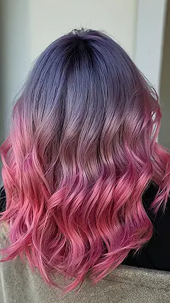Wow, check out those locks! This isn’t your grandma’s pink hair color; it’s a total masterpiece. It’s like a magical unicorn threw up a rainbow on someone’s head, and the result is seriously stunning. The way the colors blend from a smoky purple at the top to a vibrant pink at the bottom is just breathtaking. It’s the perfect blend of edgy and sweet – like listening to pop punk while eating cotton candy. You’d totally turn heads walking down the hallway with hair this awesome.