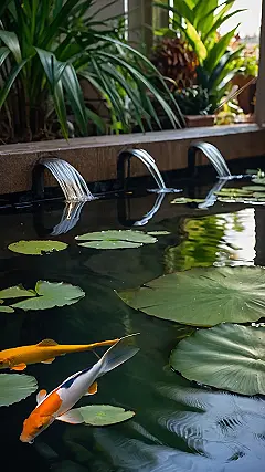 But here’s the funny part: this pond is so peaceful, it probably has more fish living in it than actual fish! It’s like they’ve decided to swap the ocean for a cozy glass ceiling and some leafy friends. Don’t worry, though, there are still some real fish swimming around, too! Just a little reminder that even the smallest spaces can feel like an adventure.