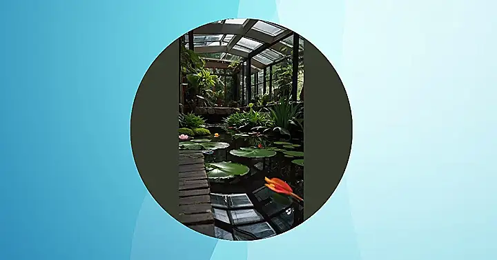 But here’s the funniest part: this isn’t just any pond. It’s an *indoor* pond, which means it’s like someone decided to make a swimming pool for fish, but without the chlorine and the scary diving boards. It’s a totally chill zone for the plants, and maybe even some cool fish too. Who knows, maybe they have a little underwater disco happening at night? Now that’s something to think about!