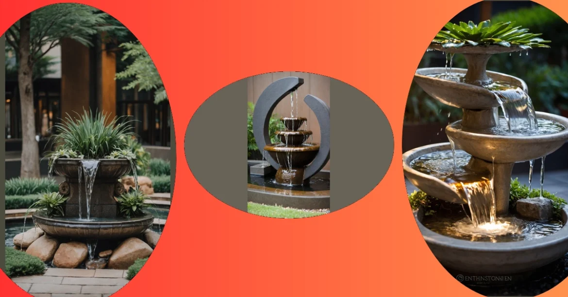 This cool water fountain looks like a bunch of giant, friendly rocks decided to stack themselves up and build their own personal water park. The water just happily tumbles down each level, creating a mini waterfall show right there. It’s the perfect spot for some plants to hang out, looking all leafy and green, like they’re waiting for their turn to go down the slides. Hearing the water splash makes you feel instantly calmer, like someone hit the ‘relax’ button on the day.