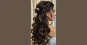 Choosing these stunning loose curls for your big day is basically like giving your hair a VIP pass to the best event of your life. They frame your face just right, making you look like you stepped straight out of a modern fairy tale where the princess actually has fun and doesn’t get tangled in her own braids. This radiant ‘Loose Curls Wedding Hair’ vibe makes you feel effortlessly beautiful and totally ready to shine brighter than any disco ball on the dance floor.