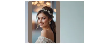 Wow, check out those gorgeous, wavy locks! This bride-to-be is rocking a hairstyle that’s seriously timeless. It’s like a fairytale come to life—all soft curls and a dazzling headpiece that looks like it’s made of tiny stars. You’d be forgiven for thinking it took hours, but who knows, maybe she just woke up like this! Either way, it’s the perfect blend of elegance and effortless chic, proving that sometimes, less is more (and a little sparkle never hurts!).
