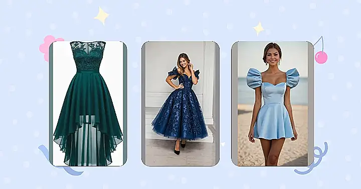 This isn’t just a dress; it’s a confidence booster wrapped in fancy blue fabric, ready for its big night out! You won’t have to worry about tripping over a super-long hem when you’re showing off your best moves (or just trying not to spill punch). The fit-and-flare style means you get to look effortlessly fabulous, and that little ribbon around the waist? Chef’s kiss! You’ll be ready for epic photo ops, laughing with friends, and maybe even impressing your crush – all without looking like you raided your grandma’s attic.