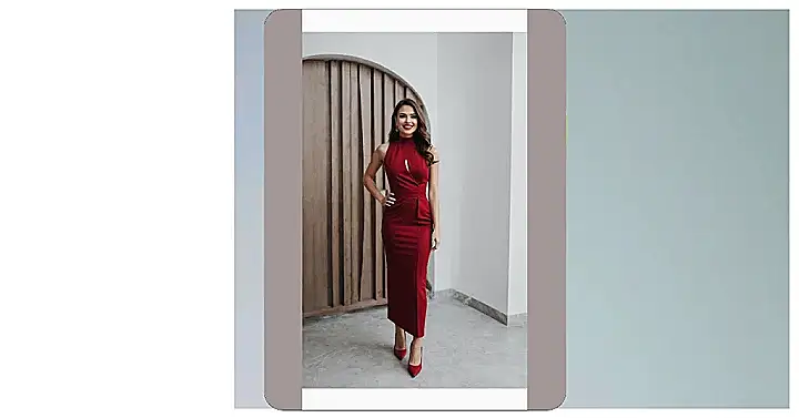 The woman in the picture totally gets it – sometimes “casual” just means you’re so effortlessly cool, you accidentally look like you’re about to walk a red carpet. Dressed in this amazing deep red, almost berry-colored dress, she looks like she just woke up, grabbed a sparkly drink (that also happens to be red!), and decided to casually slay the day. Those flowy waves in her hair and that super bright smile? Pretty sure she’s just proving that even when you’re going for a relaxed vibe, a pop of red can make you feel like the main character of your own awesome movie.