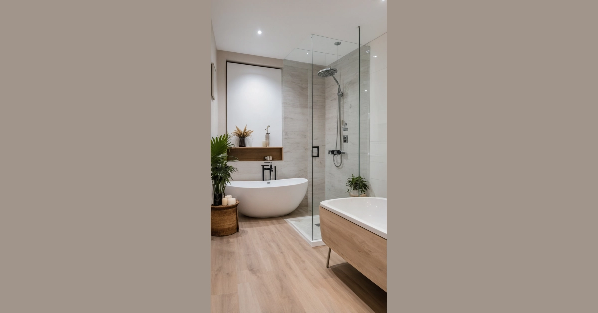 This isn’t just a bathroom; it’s practically a mini-resort designed for peak relaxation, even if you’re just trying to escape your siblings for five minutes. Forget your usual quick splash; this place is screaming “relax!” with its giant, comfy-looking tub that practically begs you to soak away all your homework stress. And check out those slick wooden floors and light walls – it’s like walking into a cloud, but with much better plumbing and a fresh plant vibe. You might even start *enjoying* getting ready in the morning, which for a grade 9 student, is basically a superpower.