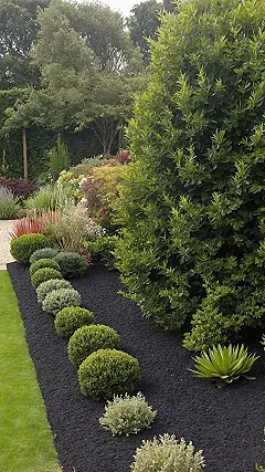 This front garden landscape is so neat, it looks like the plants had a serious meeting about ‘personal space’ and ‘uniformity.’ Those perfectly rounded bushes, lined up like a green honor guard on the dark ground, look less like shrubs and more like giant, fluffy green marshmallows or perfectly sculpted poodle heads. You just know this yard wins awards, or at least makes all the other front gardens on the street feel a little underdressed. It’s definitely not one of those ‘survival of the fittest’ situations where weeds declare war on your prize petunias every Tuesday.