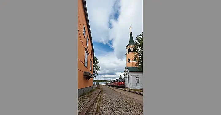 Putting this image on your screen is basically signing up for a virtual vacation to Finland, complete with slightly wonky buildings and a train that looks ready for anything (or maybe just a long nap). Forget boring default wallpapers; this is where it’s at! You can imagine yourself strolling down that bumpy path, maybe waving at the train conductor, or wondering what kind of secret adventures happen behind those old walls. It’s the perfect backdrop for pretending you’re a secret agent in Scandinavia, or just making your laptop look way cooler.