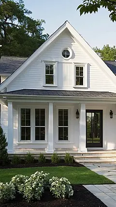 This white cottage exterior is so dreamy, it looks like it belongs in a movie about a princess escaping her castle! Imagine sipping iced tea on that porch, waving dramatically to the (probably non-existent) paparazzi. Seriously though, that fresh, clean white is like a blank canvas ready for some epic Instagram photos.