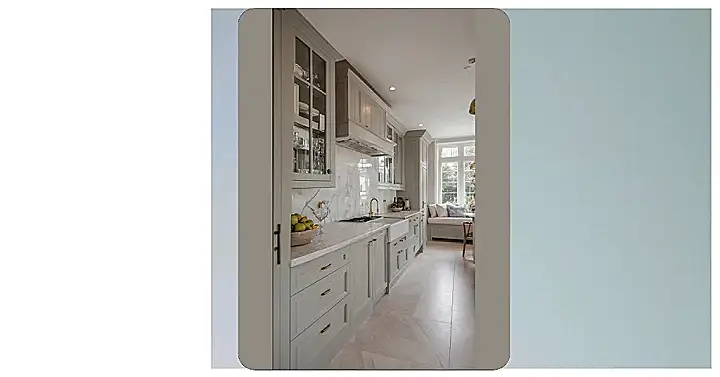 This perfectly organized kitchen looks so clean, you might actually feel bad getting a crumb on that fancy floor! With sleek, hidden storage and shiny new appliances like that built-in oven, all your clutter disappears faster than cookies after school. You might even feel inspired to, gasp, *actually* cook something that isn’t instant noodles, or at least pretend you’re a gourmet chef while making toast. Just try not to get fingerprints on those sparkling surfaces!