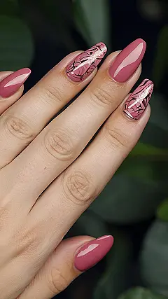 Those rose pink nails are totally Instagram-worthy! It’s like your nails are whispering, “Hey, I’m classy, but I also know how to have fun.” Plus, the leafy accents at the tips? Pure genius! It’s like a tiny garden party happening on your fingertips, which is way cooler than anything happening in Algebra class.