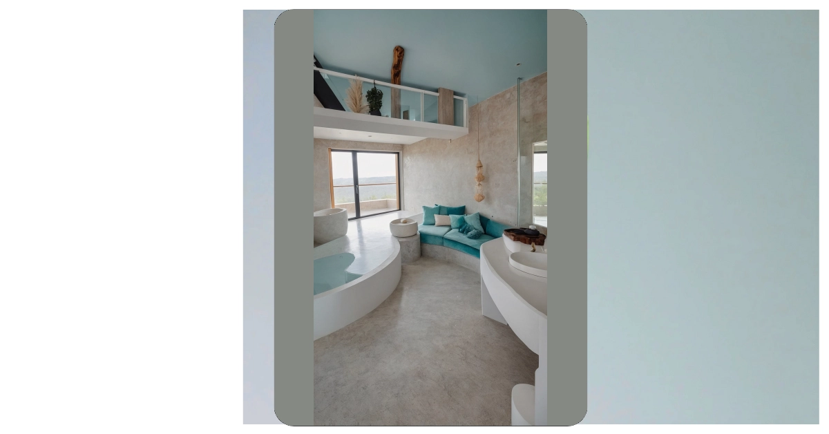 This space looks like the ultimate chill zone, perfect for some epic lake house decor vibes. Forget tiny showers; this room features a massive, curved pool-like tub that practically begs you to jump in for a float. Who needs a boring old bath when you could have a personal water park right inside? Plus, that super comfy-looking teal sofa with all those squishy pillows means you can lounge around feeling like royalty after your “swim,” maybe even pretend you’re on a fancy yacht.