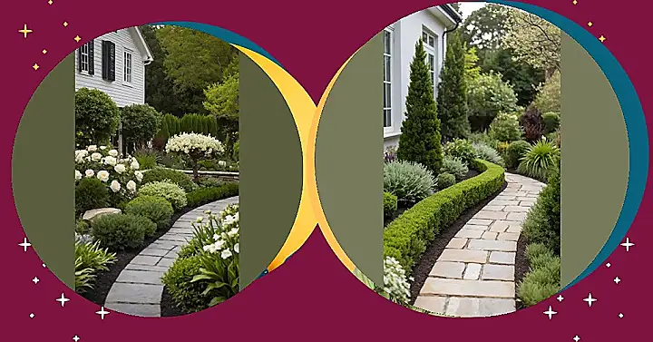 Now, while the green team and the white path are doing their thing, this garden also has some rebels with a cause, or at least, rebels with amazing colors. Feast your eyes on those spiky red plants that look like they just arrived from a rock concert, totally not blending in but owning it. And hey, hello bright orange flowers popping up like surprise confetti! They crashed the green and white party, bringing all the fun and making sure this isn’t just another predictable garden scene. It’s proof that a little bit of unexpected color makes everything way more interesting!