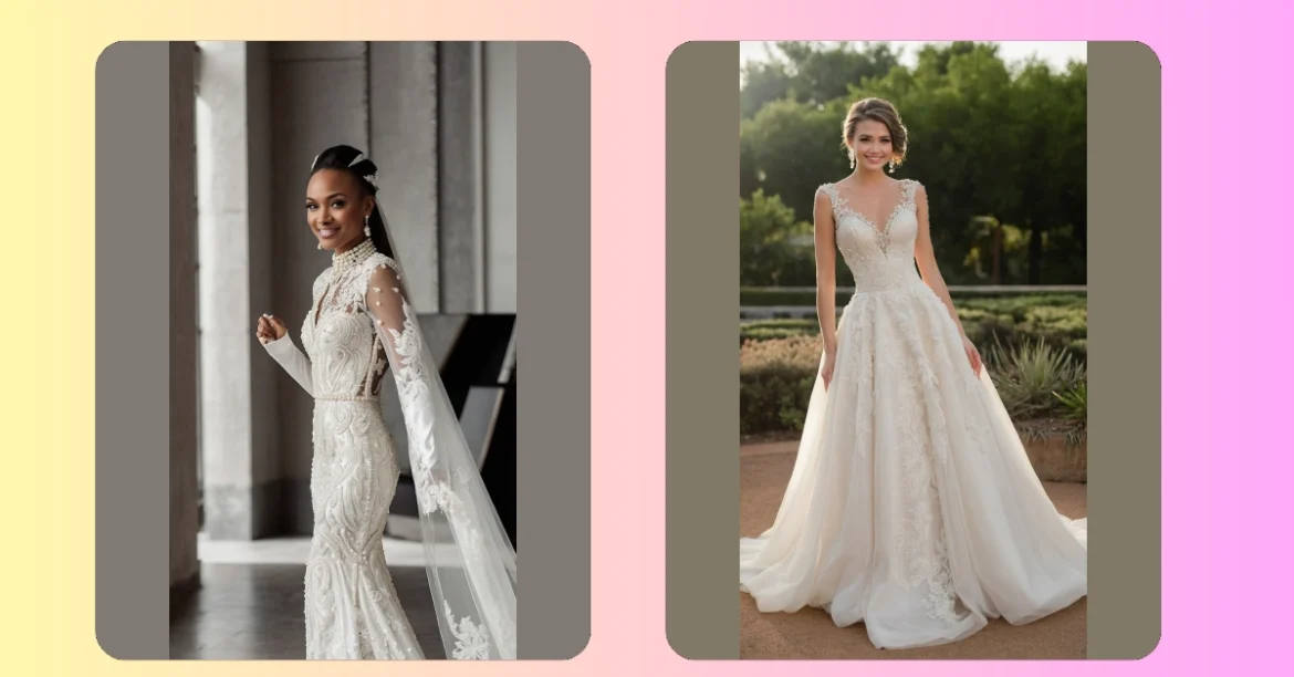 But don’t overlook the allure of a simple, sleek silk gown. There’s something oh-so-chic about a dress that embraces simplicity. Think about a corset style that enhances your silhouette and flows gracefully into a mermaid skirt – it’s a classic silhouette that won’t go out of style any time soon. And if you’re someone who loves low-key glamour, this is your moment to shine!