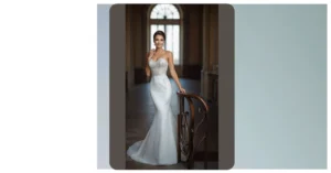 Forget glass slippers, this dress is way more comfortable AND way more sparkly. The lace is seriously breathtaking, and the way it hugs the model’s figure is perfect. It’s like the dress is whispering, “Get married in me, and you’ll be the most beautiful bride ever.” I bet it would look amazing in a garden wedding or a fancy ballroom – basically, anywhere you choose to say “I do”!