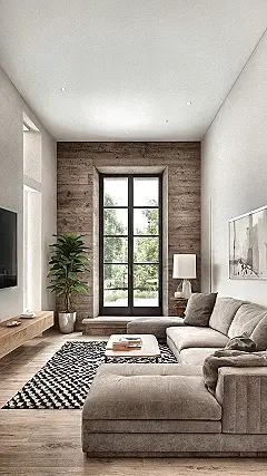 Ever stare at a perfectly decorated room and wonder if real people actually live there, or if it’s just a set for a really chic photoshoot? This living room definitely gives off those ‘I’ve got my life together’ vibes, with its super tall, elegant curtains that probably whisper secrets to each other about proper drape etiquette. And that rug! It’s so fluffy and inviting, you might just ditch the sofa and declare it your new napping spot – just try not to track too much dirt on it, or the rug gods might get upset. It’s proof that a little bit of planning in home decorating can make even a plain wall feel like a fancy backdrop.