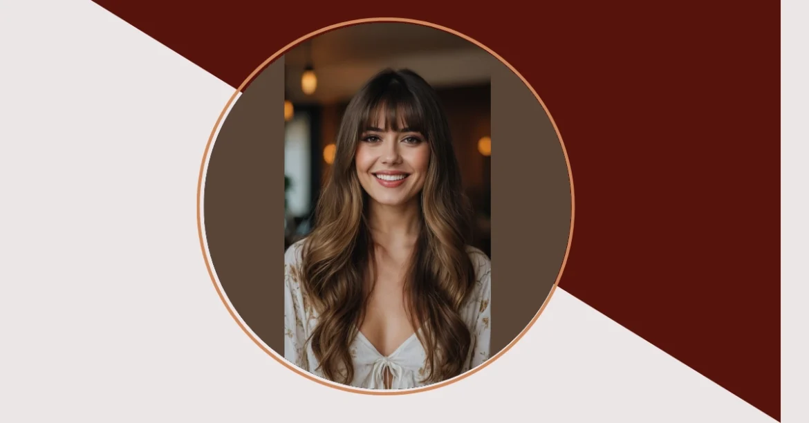 Looking at this picture, you can almost hear the compliments rolling in! Her long, wavy hair is super dreamy, but let’s be real, those bangs are doing some heavy lifting. They’re not just hanging there; they’re like the VIP section for her super bright smile, perfectly framing her face and making her eyes sparkle. This kind of soft, face-framing magic is exactly why curtain bangs are still having their moment – they give you that effortlessly chic look without making you feel like your hair is trying to take over your whole face.