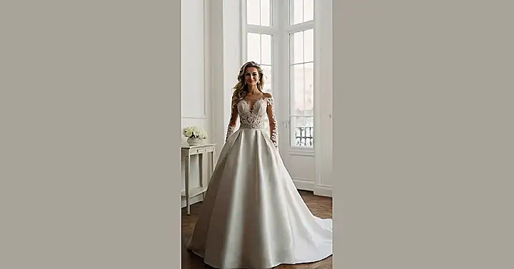 Choosing a dress that has sleeves can make your wedding day extra special. They give you the chance to add some cool details, like lace or embroidery. Plus, you won’t have to worry about your arms getting chilly during an outdoor ceremony! This dress looks elegant and totally wedding-worthy, so you can focus on the important stuff, like not tripping down the aisle and saying “I do”!