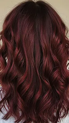 This hair color is like a delicious cherry cola, but for your hair! It’s a deep, rich red that’s super trendy and totally cool. Imagine yourself with shiny locks that have hints of brown and a hint of purple, kinda like those awesome sunset colors! It’s the perfect shade for anyone who wants to make a statement without going too over the top.