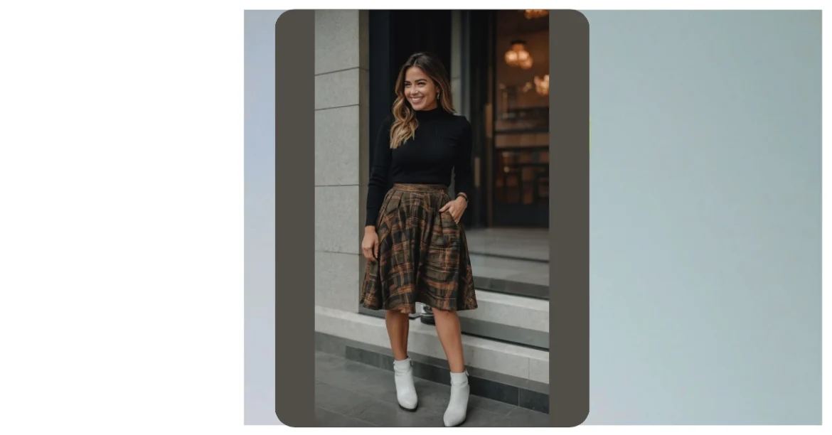This outfit is like a fashion whisper, saying, “I’m cool and comfy, but I still look totally put-together!” The plaid skirt is like a secret code, letting everyone know you’ve got style for days. It’s the kind of outfit you can wear to school, to hang out with friends, or even to a fancy dinner (just swap out the boots for some heels!).