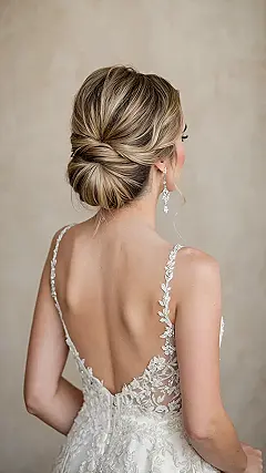 Now, let’s dive into the realm of low buns, where elegance meets comfort. They offshoot the idea of a traditional updo, but instead of towering height, we embrace a lower profile that oozes sophistication. Plus, let’s face it, who wants to deal with a frizzy crown on their big day? Low buns keep things slicked back and polished, giving you the chance to flaunt that gorgeous gown without hair getting in the way.