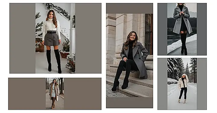 And get this – they’ve mastered the art of winter boot game! From knee-high brown suede to sleek grey over-the-knee boots, they’re showing off that even your footwear can make a statement in the snow. It’s like a winter fashion show, and these ladies are totally acing it! Who needs a runway when you’ve got a snowy landscape?