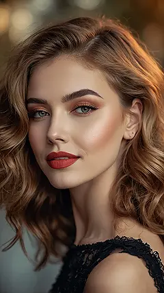 You know those mornings when your hair decides to throw a mini tantrum instead of cooperating? Well, this soft waves hairstyle is basically the super cool best friend your hair always wanted! Just look at how those gorgeous, natural-looking waves playfully frame the model’s face, making her look absolutely radiant without an ounce of struggle. It’s like her hair had a secret meeting with the ocean and decided to come back with these perfectly relaxed, bouncy curls. Forget spending hours battling your hair; this look is all about that ‘I woke up looking this fabulous’ energy, even if it took a little curling iron magic.