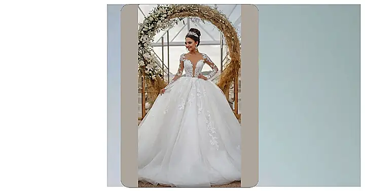 This wedding dress is like something straight out of a fairytale! It has lace, it has sleeves, and a skirt so big you could probably hide a whole pizza in it (for emergency snacking during the ceremony, of course). Imagine twirling in this beauty – you’d definitely feel like a princess, ready to meet her prince (or at least tolerate his embarrassing uncle at the reception).