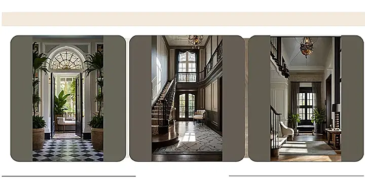 This hallway is fancier than my prom! It’s got that old-school, southern vibe, like you’re about to walk into a library full of dusty books and maybe a ghost or two. The dark colors and fancy floors give it a serious, “I drink sweet tea with my pinky out” kind of feel. I’m not sure what the southern interior designers were thinking with those plants, maybe they’re trying to be extra fancy?