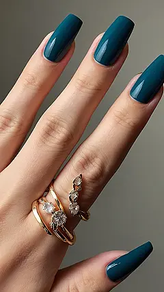 These teal nails are totally giving off “winter wonderland” vibes, right? Imagine sipping hot cocoa by a fireplace, wearing your sparkly new holiday ring, and showing off these gorgeous, perfectly polished claws. It’s the perfect holiday manicure – sophisticated enough for grandma’s house, but festive enough for all the holiday parties. It’s like wearing a tiny piece of the winter night sky on your fingertips!