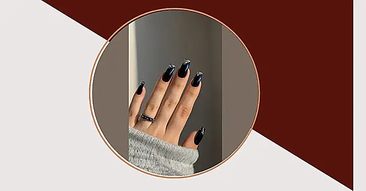 Forget frostbite, let’s talk *frost-bite* nails! Check out this image ‚Äì seriously glam, right? These dark, mysterious nails with a sprinkle of gold are totally doable at home. No need to shell out salon prices for awesome winter nails. Think of all the hot chocolate you can buy with the money you’ll save! You‚Äôll be the envy of your friends and definitely nail that winter vibe. This look is perfect for cozying up by the fireplace with a good book (or binge-watching your favorite show ‚Äì no judgment here!).