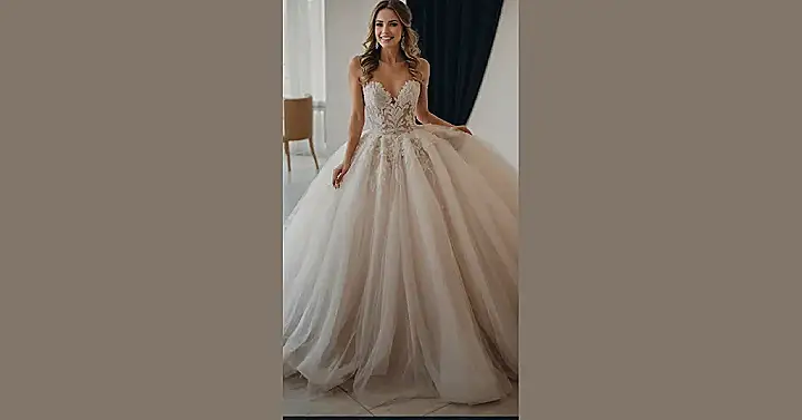 This gown practically whispers “fairy tale wedding” with its dreamy layers and sparkling details, making it look like it just stepped out of a classic movie scene. It’s got that super elegant vibe down pat, with all the intricate lace and fluffy skirts perfect for some serious twirling on the dance floor – hopefully, no one steps on the train! It’s perfectly timeless and gorgeous, proving that sometimes, sticking to tradition, even in a shade that’s mostly just really, really light, is a winning move for feeling like a total princess.