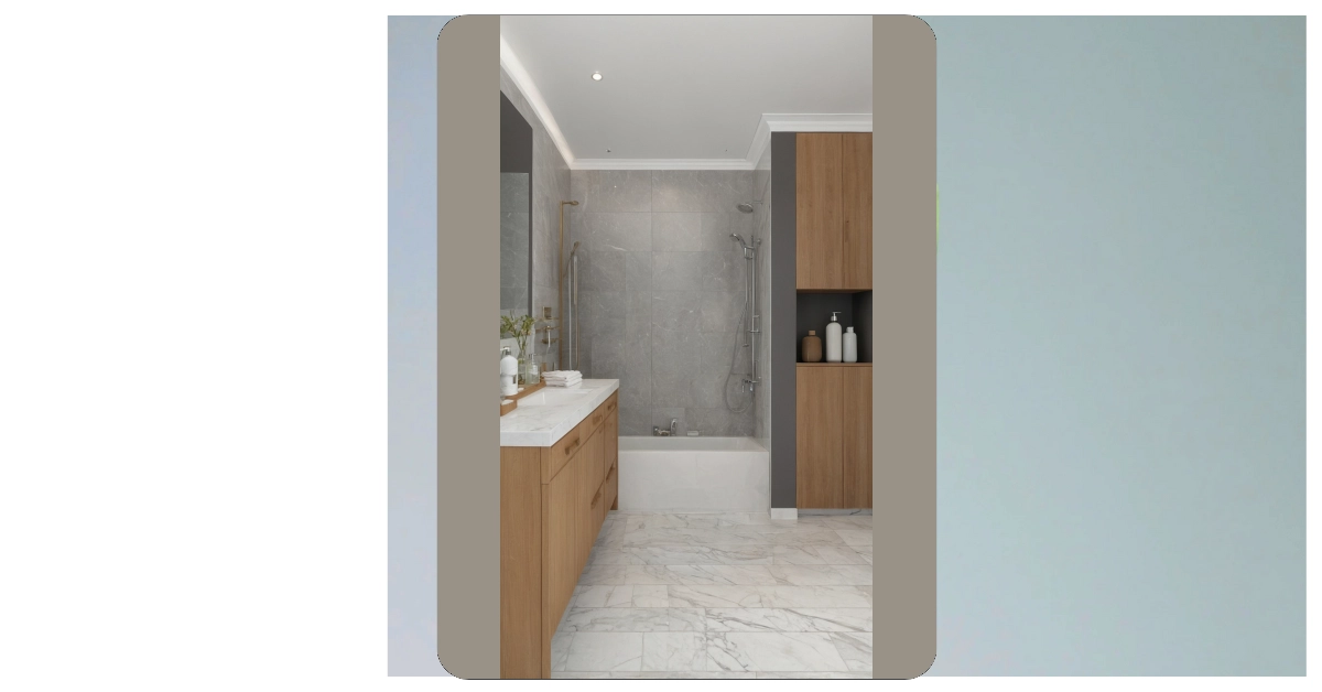 Then there are the cool features that really make this bath room remodel shine, literally! Just peek at those light wood cabinets – they’re not just holding your extra shampoo; they’re giving the whole space a warm, natural feel. And check out that wall next to the shower, with the wooden panels that have lights glowing between them. It’s like a secret light show every time you step in! That mirror with its built-in glow means you’ll always look your best, whether you’re perfecting your morning routine or just trying to decide if your hair is cooperating today. It’s clear this remodel understood the assignment: make a bathroom so cool, you’ll actually want to hang out in it, maybe even do your homework there (just kidding… mostly).