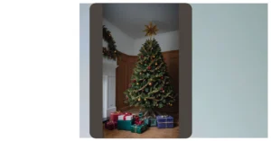 And let’s not skip over the decorating masterclass happening here! This Christmas living room has more twinkling lights and glowing candles than a very enthusiastic light show. The Christmas tree, with its elegant ornaments, looks like it’s auditioning for a holiday magazine cover, demanding everyone’s full attention. It’s clear someone went all out, thinking, “Why have one cozy corner when you can have *every* corner radiating peak holiday spirit?” You can almost hear the festive music and smell the pine and cookies just by glancing at this picture-perfect winter wonderland.
