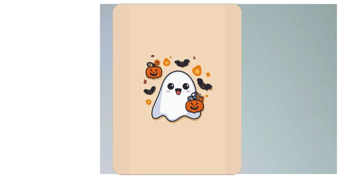 This wallpaper is perfect for any spooky season fan! The ghost is so happy it almost makes you want to give him a hug. And the bats and spiders? They’re like the party guests, adding a touch of excitement to the scene. The colors are warm and inviting, making you feel like you’re part of a fun, friendly Halloween gathering. Get ready to celebrate Halloween with a smile thanks to this spooky-sweet wallpaper!