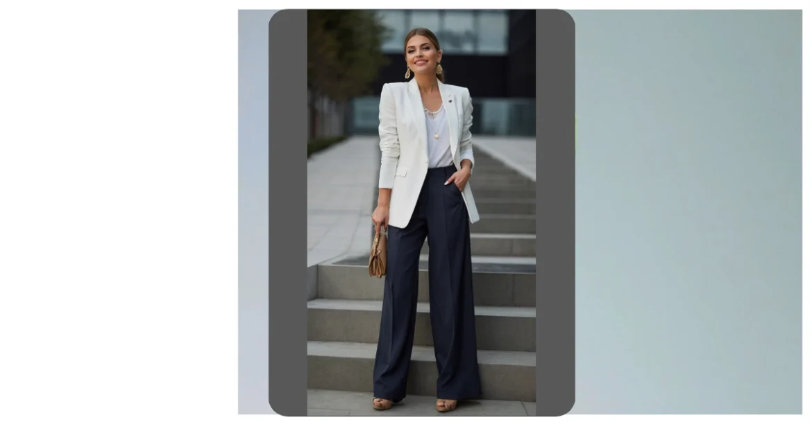 Okay, so picture this: it’s spring 2025, and you’re rocking this exact outfit. A cool pastel blazer is like the chill older sister of a stuffy suit jacket, and those flowy pants look comfier than your favorite sweats (but way more stylish!). This look says, “I’m ready to ace that presentation… and grab boba with my friends after!”